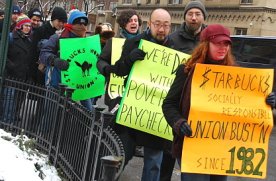 19 stycznia członkowie związku IWW protestowali przeciwko niewolnictwu zarobkowemu. Protest zaczął się pod biurem firmy Starbucks. Domagali się wyższego wynagrodzenia dla pracowników Starbucks za pracę we wszystkie święta. 19 stycznia to święto "Dzień Martina Luthera Kinga", ale pracownicy Starbucks nie dostaną dopłaty, jak podczas innych świąt.