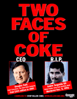 Do czasu aż związkowcy w zakładach Coca-Coli nie będą mogli swobodnie działać bez strachu przed przemocą i śmiercią ani nie zostanie zaprzestane łamanie praw dzieci oraz niszczenie środowiska naturalnego, apelujemy do wszystkich członków społeczeństwa obywatelskiego o bojkot produktów firmy Coca-Cola.
