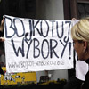 "NIE CHCEMY BYĆ MIĘSEM ARMATNIM USA", "BOJKOTUJ WYBORY", "PRECZ Z FUNDAMENTALIZMEM KATOLICKIM". Uczestnicy pikiety zostali spisani przez policje.