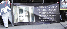 Kilkadziesiąt osób od rana protestuje w Warszawie przed siedzibą firmy Axa - uwikłanej w finansowanie (posiadają akcje) laboratoriów Huntington "Life" "Science".