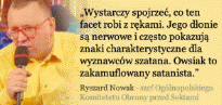 Akcję prowadzi fanatyczny polityk UP Ryszard Nowak. To Nowak oświadczył, że Jerzy Owsiak jest satanistą, ponieważ wykonuje nerwowe ruchy rękoma. Jerzy Owsiak odpowiedział na to nazywając Ryszarda Nowaka "kompletnym idiotą". Nowak także atakował wegetarian. Podczas akcji "Lato bez Sekt", świry walczące z szatanem przeprowadziły atak łańcuchami, kijami i kamieniami na grupę filozofów, ekologów i wegetarian, którzy spotkali się aby omawiać sprawy związane z ekologię, za co zostali uznani za sektę.