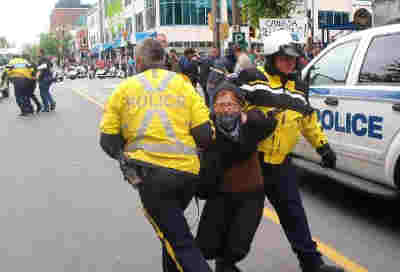 W piątek ok. 400 demonstrantów protestowało w Halifaksie w Nowej Szkocji przeciw konferencji "Atlantica" poswięconej wolnemu handlowi. 20 osób zostało zatrzymanych. Podczas aresztów zaczęły się zadymy. Policja użyła gazu łzawiącego przeciw demonstrantom oraz korzystała z gumowych kul i taserów. Demonstranci rzucali żarówki z farbą w kierunku atakujących policjantów.